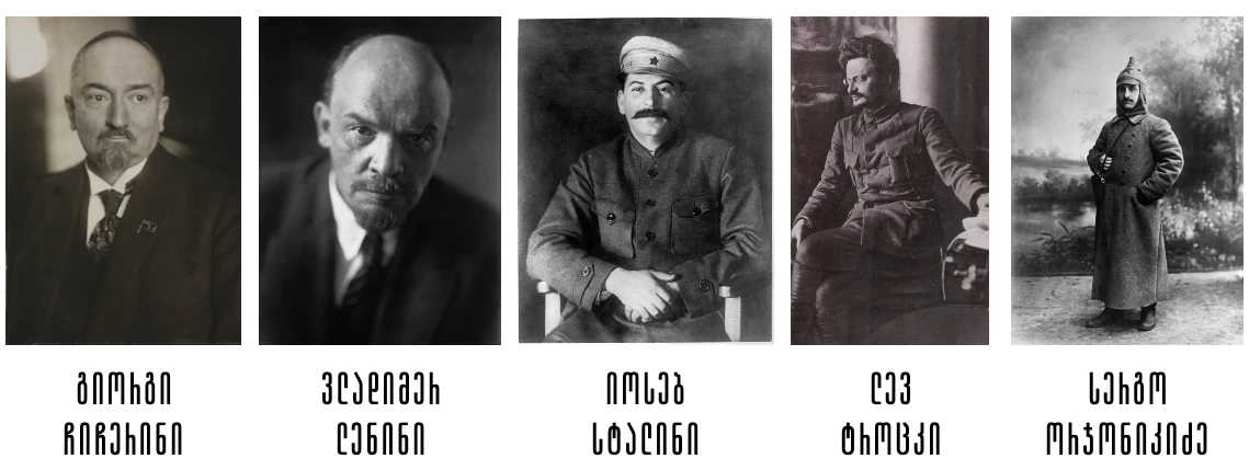 გრიგოლ (სერგო) ორჯონიკიძე – ეთნიკურად ქართველი, რუსეთის კავკასიის ფრონტის სამხედრო-რევოლუციური საბჭოს წევრი და ყველაზე გავლენიანი ფიგურა, ასევე, რუსეთის კომუნისტური პარტიის ცენტრალური კომიტეტის კავკასიის ბიუროს ხელმძღვანელი, ფაქტობრივად, კავკასიის ფრონტის პირველი კაცი სამხედრო-პოლიტიკური და პარტიული ხაზით და საქართველოს სწრაფად და ყველაფრის ფასად საბჭოთა რესპუბლიკად გადაქცევის მოსურნე.
