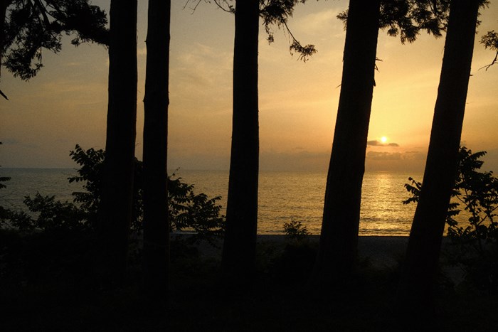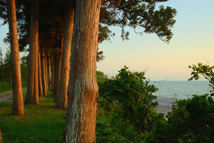 აქ მზე რომ ჩავიდა, მუსიკა ისე ჩაგვესმა, არც ჩაგვირთავს. ცურვის დროსაც მხოლოდ წყალთან შეხება ისმოდა. პირდაპირ სანაპიროზე გავწექით. გვიყვარს ეს თამაში - თვალების მოჭუტვით რომ ემალები სხივებს. შემაღლებული ბორცვის იქით ხშირი, მწვანე და იდუმალი ტყეა. ეს ტყე არ გაქრება. მირაჟი კი არაა. ზღვის სილურჯეს და თავისუფლებას ღრმა ფიქრივით ეხვევა.
