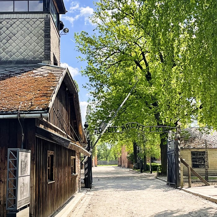 აუშვიცის შესასვლელში გრძელი რიგია. პარკინგზე ადგილი თითქმის არაა. ზოგ მანქანასთან ოჯახები შეკრებილან: დედები, მამები, შვილები - ჩაცუცქულან და ბუტერბროდებს ჭამენ. იქით, გადახურულ ადგილს ბოლი ასდის - მწეველებისთვისაა; ტუალეტის რიგი არ მთავრდება. წარწერები ინგლისურად, პოლონურად და ებრაულადაა. ჩვენი გიდი პაველია, 17 წელია, აქ მუშაობს. მანამდე ჟურნალისტი იყო რადიოში. ბანაკის ამბები მხოლოდ მოყოლით არ იცის, თავად შეხვედრია ყოფილ პატიმრებს და ინტერვიუებიც ჩაუწერია. ქვედა სართულზე ყურსასმენებს ვიღებთ და ბეტონის თანამედროვე, გრძელ გვირაბში შევდივართ. წესია ასეთი - სანამ ბანაკში შეხვალ, ეს გვირაბი ჩუმად უნდა გაირო და ხმას მოუსმინო. დინამიკიდან წამოსული ხმა ერთ ტონალობაში, უემოციოდ, მშრალად იმეორებს აუშვიცის ბინადართა სახელებსა და გვარებს.