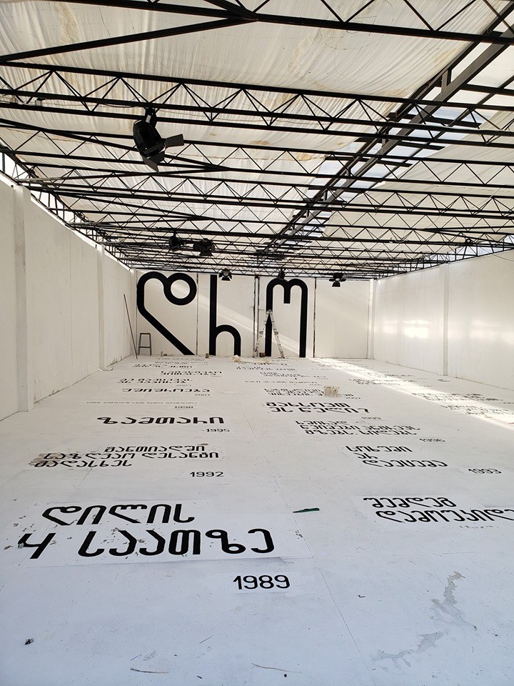 აქ კი, ამ საგამოფენო სივრცეში, როგორც ფურცელზე - თითო წინადადებამდე, ზოგჯერ სიტყვამდე დაყვანილი წლებია: 1989 - 2019 წელი.
